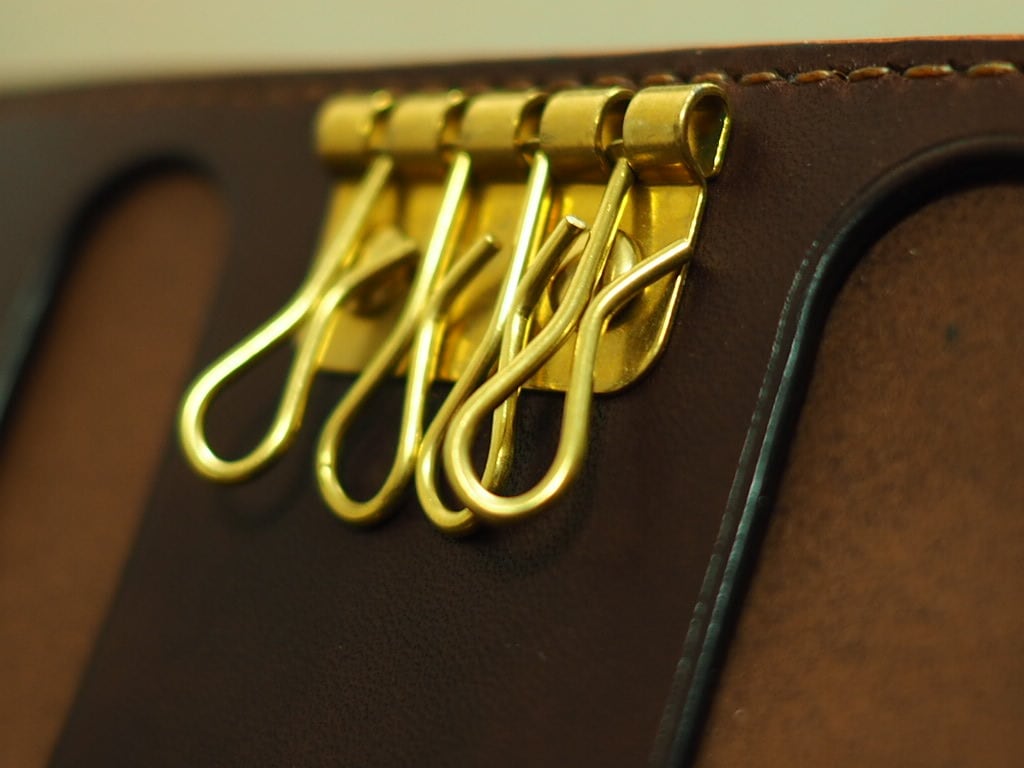 アミエット社が廃業となり、キー金具を選定するなかで日本製【真鍮素材】の金具を発見したので即採用を決めた4連キー仕様となりました。真鍮製の金具ですので鉄製品よりも柔らかいので、鍵の脱着には注意が必要ですが壊れた際には金具自体の交換が可能なのは利点かなと思います。